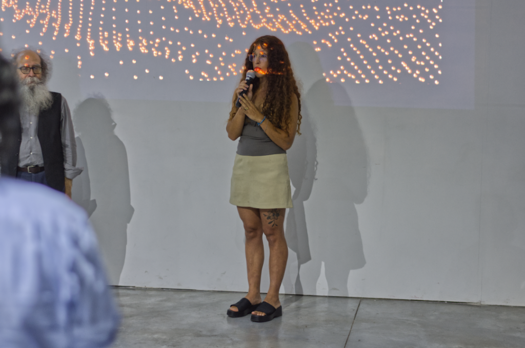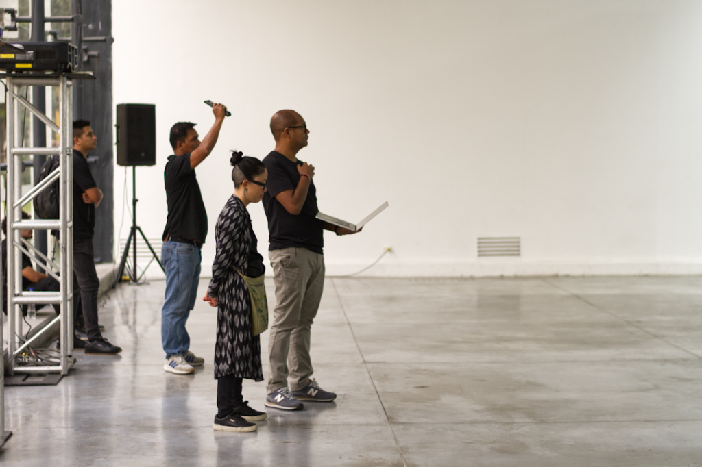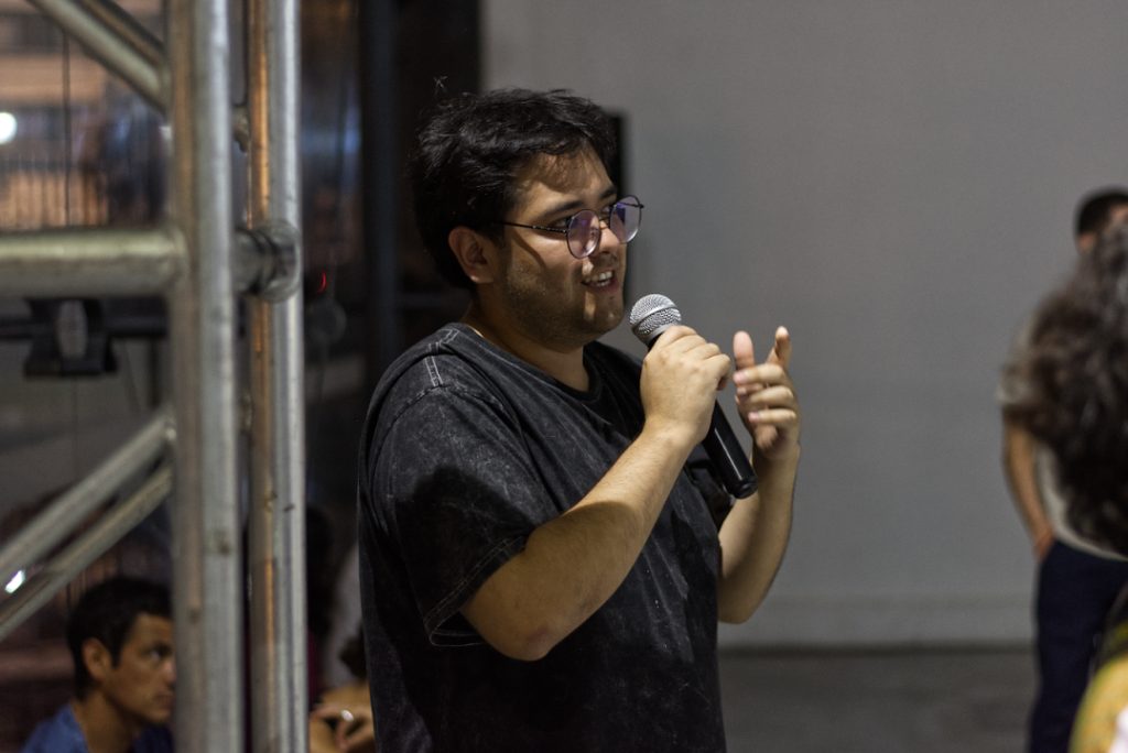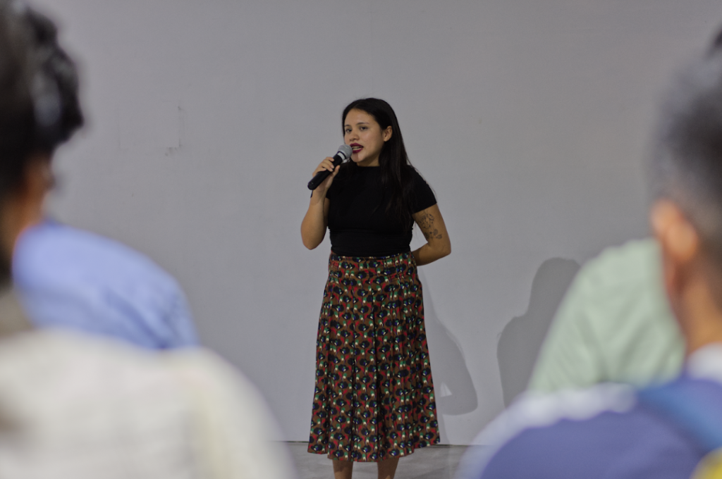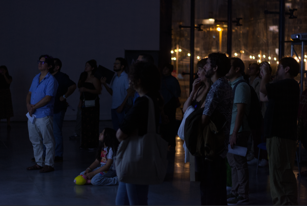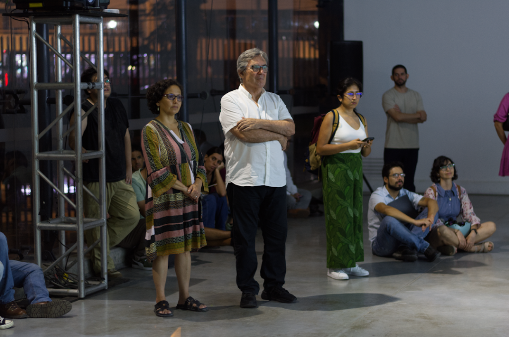 La sesión comenzó con la proyección de entrevistas realizadas durante la investigación, seguida de una introducción al marco conceptual de la residencia y una exposición del artista sobre su proceso y los aspectos técnicos de la pieza. Tras la presentación de la obra, se abrió un espacio de comentarios con Jorge Villacorta (ATA), Mariana Poblete (Estación Chana) y Josefa Nolte, junto con intervenciones del público. El encuentro funcionó como un ritual de cierre y devolución colectiva.