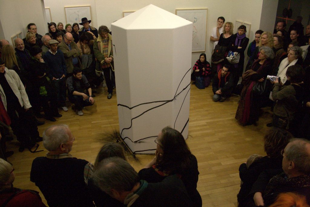 «Antonio Paucar está influenciado por una cultura antigua muy potente. Fue el encargado de actuar en la Nit de l´Art, en la galería Maior (Palma de Mayorca, España). Su performance fue increíble, como un chamán. Organicé un festival de performances y Antonio se presentó. Me quedé fascinada con su fuerza, con cómo llenaba el espacio y salía una capacidad creativa que desbordaba. Con el tiempo nos hicimos grandes amigos, creo que sabe sensibilizar un espacio. Un artista quiere espacio, lo necesita, y provocar el interés del público es bueno para el arte. Provocar es bueno»